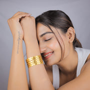 Elevate your summer look with Aura’s Golden Beach Cuffs. Featuring a sleek, sculpted design in a soft gold finish, these cuffs are made to complement breezy whites and sun-kissed skin.